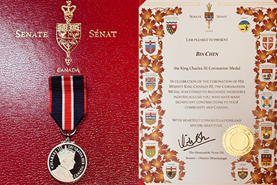 近日,加拿大联邦参议员胡子修(The Hon. Victor Oh)在Bayview俱乐部隆重举行查尔斯三世国王加冕勋章颁发仪式,以表彰十位在各自领域对加拿大社会作出卓越贡献的人士,bbin宝盈集团总裁董事长陈滨获此殊荣。